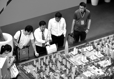 北京秋季房展會樓盤工作人員在向購房者介紹樓盤情況。新華社發