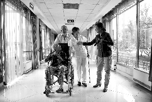 壽山福海養老院為民營資本投資建起的養老院。圖為該院院長張淑霞與老人及護理人員在走廊里相遇,張院長關切地詢問老人的生活情況。 本報記者 和冠欣攝