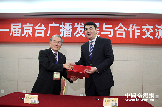 北京人民廣播電臺和臺灣中華廣播商業同業會簽訂合作意向書(中國臺灣網 普燕 攝)