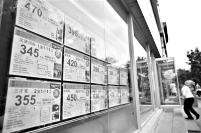海淀區五道口附近的房產中介公司,待售房屋信息貼滿了門店的窗戶。記者 侯少卿 攝