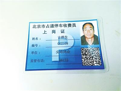 新款上崗證還分橙色、藍色兩種。橙色的是文明收費員證件,藍色的是普通收費員證件。明年1月中旬,20個規范服務示范路段和20名文明停車管理員將正式公布。屆時,示范路段將加挂“佔道停車規范服務示范路段”標牌,20名文明停車管理員將在收費員上崗證上加注“文明停車管理員”標識。