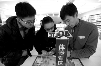 昨天,消費者在北京的三星體驗店體驗三星4G手機。新華社發