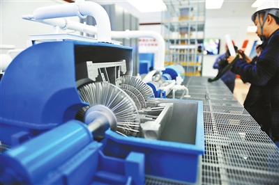 熱電公司的技術人員向記者展示設備改造模型攝影/本報記者袁藝