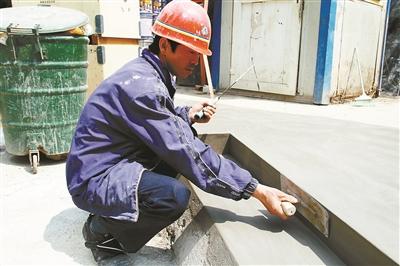 4月29日上午11點,戴著紅色安全帽,身穿灰藍色工服的曹昌寶如約出現在朝陽區一個商務樓工地門口。見到北青報記者,他首先遞過來一頂安全帽說:“進工地都得戴。”北青報記者看到,曹昌寶另一只手還拎著沾滿泥漿的瓦工刀和抹子。