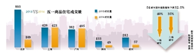 一位不願具名的房企人士告訴記者,2014年樓市明顯出現了和2013年不一樣的變化,在2013年已經出現了樓市分化逐漸蔓延到一二線城市。在信貸收緊、供應增加、成交量持續萎縮等多種因素的衝擊之下,供需雙方對于市場的預期已經出現轉向的苗頭。