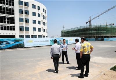 昨日,永清國際服裝城,幾位浙商在觀看剛建成或正在建的服裝廠房。新京報記者 尹亞飛 攝