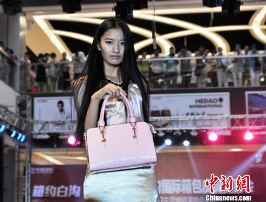 模特在開幕式上展示新款箱包。 于俊亮 攝