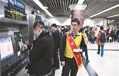 地鐵工作人員指導乘客購買車票攝影/本報記者 黃亮