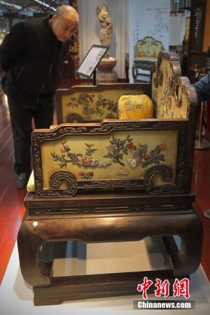 這次拍賣會,神秘富豪李春平也特意趕到南京,不過,他怕引起大家的過度關注,並沒有出現在現場。第36號拍品,就是李春平最為推崇的清乾隆紫檀百寶嵌花卉寶座,這是李春平花費了3年多的時間從天津一位清王爺後人手中收來的。故宮博物院研究員胡德生曾向現代快報記者介紹,這張乾隆寶座,目前故宮也僅有5張,“百寶嵌”工藝更是難得,當年這張寶座由清宮造辦處制造,花費了3年多的時間才做成。
