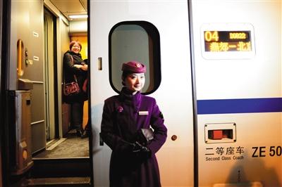 7時16分,列車準時停靠在北京站站臺。車剛停穩,乘客已經一股腦涌向車門處,迅速下車。一對情侶出站後,快速穿過北京站站前廣場向地鐵走去。他們在東直門附近上班,通過動車換乘地鐵,十分方便。