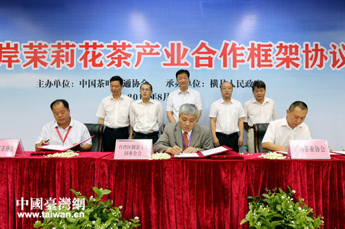 中國臺灣網8月27日橫縣消息 日前,海峽兩岸茉莉花茶產業合作框架協議在廣西橫縣簽約。廣西茶葉協會、橫縣花茶協會與臺灣區制茶工業同業公會共同簽訂海峽兩岸茉莉花茶產業合作框架協議,雙方將加強溝通合作,攜手拓展茉莉花茶市場。