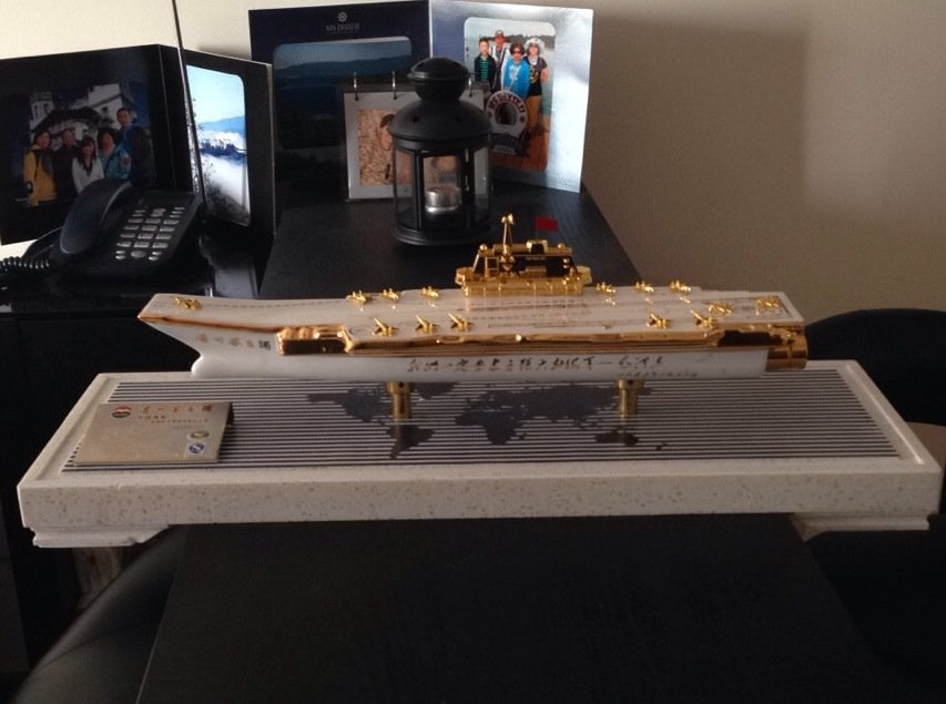 【環球網綜合報道】中國海軍遼寧艦航母自去年加入中國海軍戰鬥序列以來,頻頻傳來令人振奮的好消息。艦載戰鬥機成功起降、遠海試驗成功、開赴南海訓練、航母編隊戰術演練……這些一個個難忘的瞬間都給軍迷們留下了深刻的印象。在國產武器裝備的重要時刻,國內一些大型酒廠也會推出特別版紀念酒。近日,就有網友展示了自己收到的貴州茅臺“遼寧艦”。這瓶紀念酒把酒瓶做成了遼寧艦航母的形狀,還刷涂上了土豪金的顏色,高端大氣、盡顯奢華。據悉,這瓶特別紀念酒價值不菲。