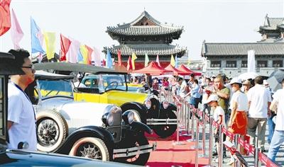 8月23日,2013中國(大同)國際汽車文化節在山西省大同市的南城牆拉開帷幕。豪車、新車、名車、經典老爺車雲集古城牆,摩托車巡遊、中國國際汽車模特大賽西北賽區比賽、五省市1:8燃油動力越野車邀請賽、飛艇和機器人互動表演等活動為古都市民和旅客獻上一場精彩的汽車盛宴。記者 許之豐 攝