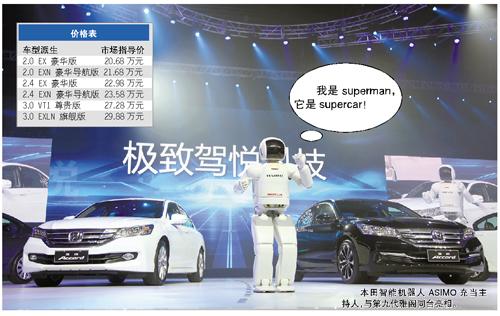 9月12日,廣汽本田在上海世博中心發布了其“全價值進化科技旗艦”——第九代雅閣,據悉該車在廣汽本田全國特約銷售服務店同步上市。廣汽本田執行副總經理鬱俊宣布,第九代雅閣擁有2.0L、2.4L與3.0L三種排量,共推出6款車型,官方指導價格為20.68萬元~29.88萬元;並享有“三年或十萬公里”高標準整車保修政策。由Honda研發的全球最先進的類人型機器人ASIMO更現身發布會現場,助興第九代雅閣的上市盛宴。