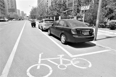 2012年5月6日,朝陽區鼎慧街,自行車道被私自劃成停車位收費。資料圖片 孫純霞 攝