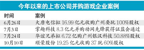 今年以來,上市公司並購網絡遊戲公司正演變成一大趨勢。