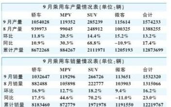 每年的9月均是中國車市的旺銷時節,今年的火爆更甚以往,國內乘用車銷量整體呈現了兩成的高增長,就連日係車企的銷量也有很大幅度的提升。全國乘用車市場信息聯席會上周公布的數據顯示,9月份國內乘用車產量為157.4萬輛,環比和同比分別增長13.2%和17.4%;銷量為153.2萬輛,環比和同比分別增長16.2%和23%。