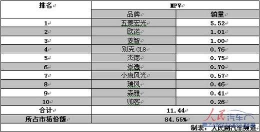 從表中能夠看出,上汽通用五菱旗下的五菱宏光車型以5.52萬輛的銷量一騎絕塵,佔據市場份額逾四成,是MPV市場上當之無愧的冠軍。事實上,單月銷量破5萬的成績即便在整個汽車市場也是俾睨群雄,即便是轎車市場的長安福特福克斯和上海大眾朗逸,10月份中汽協給出的銷量也“不過”3.97萬臺和3.03萬臺。