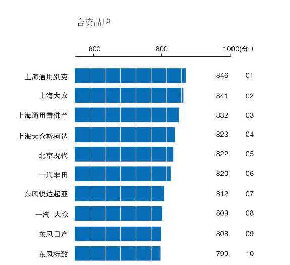 2013中國汽車品牌售後服務滿意度指數正式發布,別克品牌以846分首次登頂合資品牌,自主品牌整體得分為776分,較上年下降了28分。