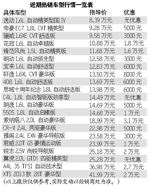 記者從市場上看見,新年第一個月,不少經銷商還是希望開個好頭,因此不少現車充足的新車優惠政策持續,經銷商也看準春節購車的人的心理,本月部分車型的優惠加大了一點之余,還適時推出車貸、置換方案,方便消費者及時購車。如北京現代朗動,優惠比上個月增加1000元左右,長安福特新福克斯優惠9000元現金,送精品禮包,經典福克斯優惠1萬元起,送精品禮包,蒙迪歐-致勝雖然無現車,但是現在下訂也可以優惠2.5萬元,送禮包,新嘉年華優惠8000元,福特Max優惠2萬元。本土品牌方面,奇瑞艾瑞澤7置換有3500元的優惠,帝豪EC7也放出了5000元優惠。