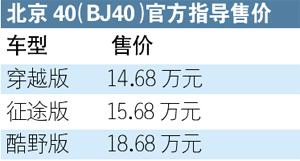 2013年12月28日,北京汽車與Jeep分手之後的首款SUV——北京40(BJ40)正式上市。新車搭載2.4L自然吸氣發動機,配備5速手動變速器以及手動分時四驅係統,提供包括穿越版、徵途版、酷野版在內3款車型,並有6種車身顏色供選擇。
