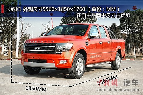江蘇卡威皮卡嗅探到皮卡未來趨勢,作為自主品牌車企首推寬體大尺寸皮卡卡威K1,如果不是生活在限制皮卡行駛的大城市,目前買一輛10萬元左右的大皮卡還是可以。近日,中新網汽車頻道記者走進江蘇卡威集團,親自實測自主品牌大尺寸皮卡卡威K1。