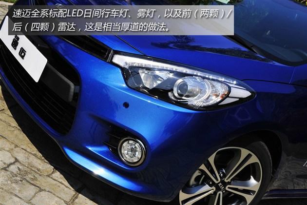 從車子本身來說,全新速邁保持了經典的無框車門設計,許多消費者會為此買單。放射性霧燈則是我個人非常喜歡的細節。車輛頭尾燈都運用了LED技術,夜間效果很好。車燈本身造型也不差。