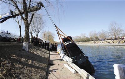 昆玉河河道為“V”字結構,中間最深處超過兩米。轎車入水後,河水很快沒過了車頂。“但司機很快從車里鑽了出來,遊上岸來,看起來應該沒受什麼傷。”趙師傅稱。多位目擊者稱,男司機上岸不久後就不知到哪去了,只在岸邊留有一堆脫下的濕衣物。