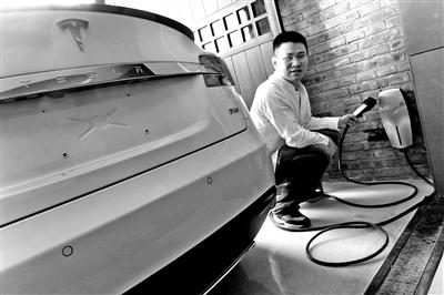 特斯拉為車主汪東風在車庫配裝了充電樁本版攝影/本報記者 魏彤