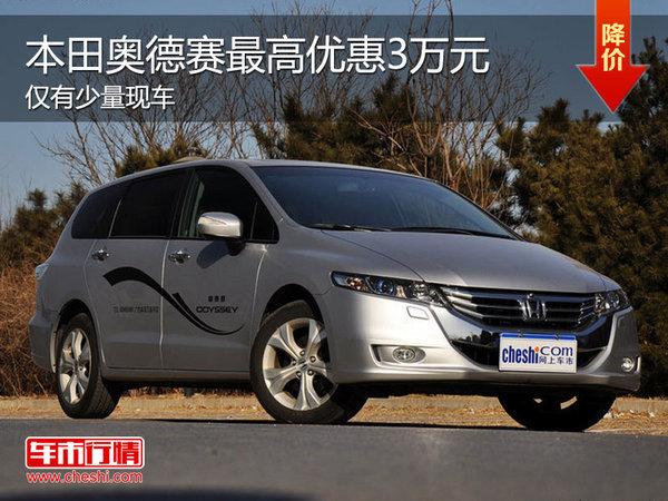 全新的2013款廣汽本田奧德賽,已于2012年7月正式上市銷售,相比老款車型,2013款奧德賽在外觀設計方面以及舒適配置上都略有所提升。目前,2013款奧德賽共擁有2.4L一個排量,共8款車型可供選擇,售價區間為22.98-28.68萬元之間。近日,編輯從廣汽本田石景山4S店處獲悉,奧德賽部分車型最高優惠3萬元。具體如下: