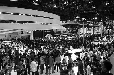 人頭攢動的北京車展現場。 記者 涂露芳攝