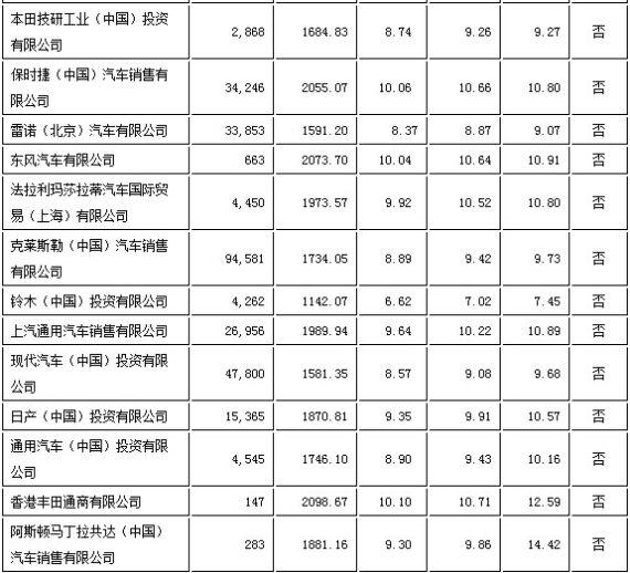 克萊斯勒中國、通用中國、日產中國、本田中國、雷諾(北京)等13家進口乘用車企業平均燃料消耗量不達標。(記者 劉燁)