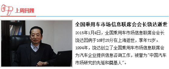 1月12日,中國汽車工業協會12月汽車行業信息發布會將在京召開。本月將主要發布汽車、摩托車工業產銷數據及景氣指數,發布2015年中國汽車產量預測,同時還將召開2015中國汽車論壇相關信息發布會。