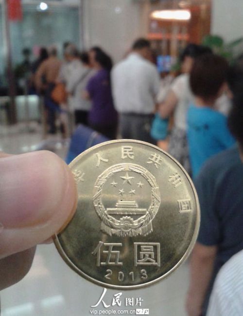 9月23日,央行發行的限量版"和"字書法行書5元紀念幣倍受青睞,黃銅合金材質背面印有“和” 字書法,且發行數量為5000萬枚,堪稱限量版“高富帥”和“土豪金” ,僅一上午各家銀行網點的紀念幣就被瘋搶一空。