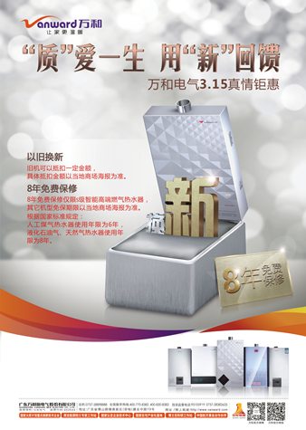 據了解,我國的家電“三包”規定中,燃氣熱水器、電熱水器、吸油煙機、燃氣灶要求整機三包有效期1年,燃氣熱水器主要部件三包有效期3年;同時,國家相關部門還規定燃氣熱水器的使用年限最高為8年。在此次3.15活動中,萬和的活動產品服務保修年限超出國家規定標準數倍,特別是S級係列燃氣熱水器做出行業最高免費保修8年的服務承諾,相當于買了一份“終身保險”,一次購買,終身保修。正是基于對自身20多年穩健發展的品牌實力、產品品質和服務質量的多方自信,自2012年3.15開始,萬和已連續第3年堅持“終身免費保修”。
