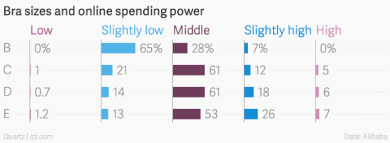 今年夏天,數據分析師在對阿里巴巴內衣銷售數據分析後發現,購買大號內衣的女性往往更“敗家”。