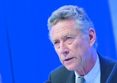 圖為IM F經濟參事、研究部門主管奧利維耶·布蘭查德8日在IM F華盛頓總部的新聞發布會上發言。 (新華/法新)