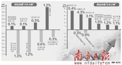 與上月比,3月份廣東居民消費價格總水平下降0.5%。其中,食品價格下降1.2%,非食品價格下降0.1%;消費品價格下降0.5%,服務項目價格下降0.6%。