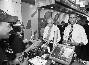 10月4日,美國總統奧巴馬與副總統拜登外出購買午餐,總統先生買了一份三明治。有網友調侃,看來白宮內的廚師也都臨時休假了。CFP供圖