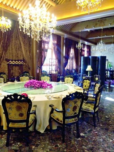 “大廳套餐有每位500元、800元兩種,一直以來只提供套餐。前段時間風聲緊,臨時推出了單點。現在基本回暖了,準備取消單點。”乙十六北海禦膳堂店工作人員介紹,“包廂內價格不含酒水最低每人800元,外加收15%服務費;比較受顧客青睞的是具有皇家氣派的大房間。”