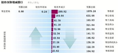 和往年相比,今年絕大多數部門三公經費明顯下降。比如市公安局盡管額度最高,但也比去年下降了277萬元;市教委下降2088萬元;市體育局下降638萬元。