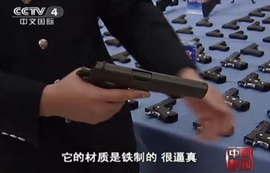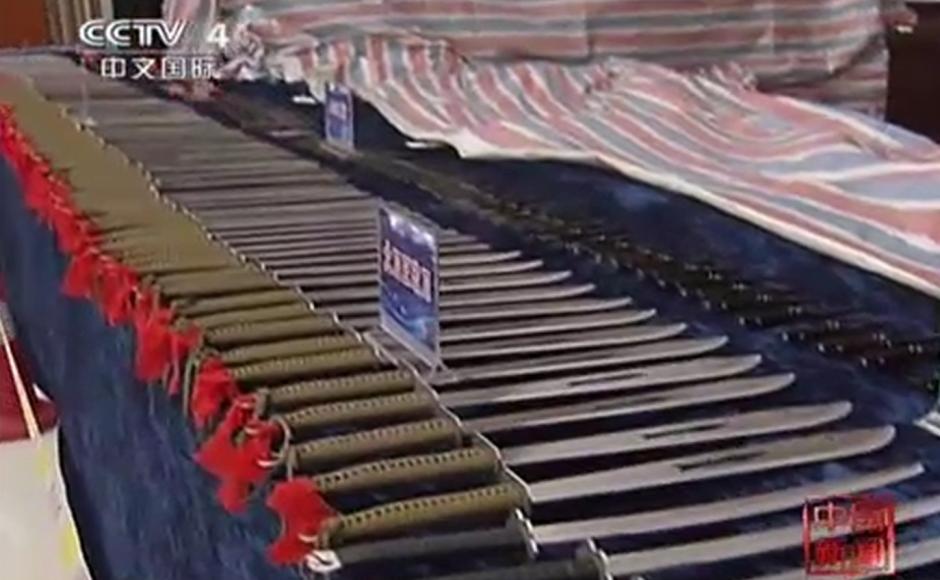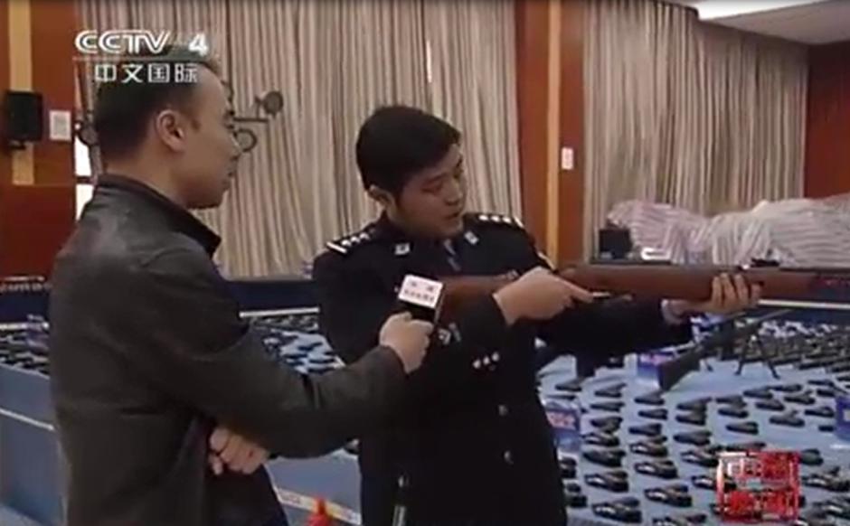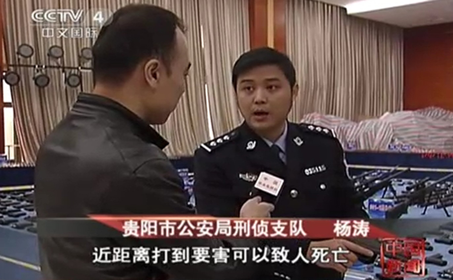 近日,貴陽警方偵破了一起特大制造、販賣槍支、管制刀具的案件,共收繳槍支1萬5千支,管制刀具12萬把,目前有15名涉案的犯罪嫌疑人被警方抓獲,這個犯罪團夥的制販網絡覆蓋了湖南、廣東、四川、貴州等27個省、區、市。(視頻截圖)來源:央視