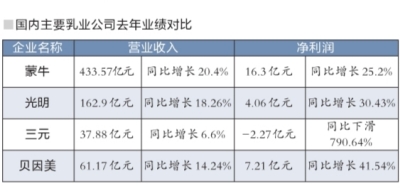 此前的2008年爆發的三聚氰胺事件中,三元獨善其身,隨後其收購整合原三鹿破產資產,並成立河北三元,主要布局奶粉業務。昨天,三元年報則顯示,河北三元去年營業收入7.3億元,較上年增長了23%;但是凈利潤虧損6813萬元,同比增虧3247萬元。三元將虧損的原因歸結為原料成本上漲及市場投入增加。