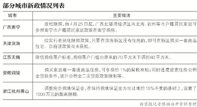 4月以來,江蘇無錫、天津濱海新區、廣西南寧、杭州蕭山區等地紛紛出臺樓市新政,從不同方面開始救市。相對于前兩年時而出現的救市及被叫停,這一次,地方政府救市已經開始蔓延開來。