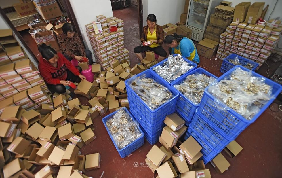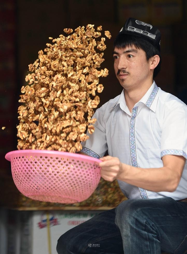 5月22日,阿迪力(中)、蔣金亞(右)和蔣春楊在包裝間里合影。湖南長沙理工大學的維吾爾族大四學生阿迪力·買買提吐熱今年23歲,來自新疆喀什的他出生在一個切糕世家,他的父母靠售賣切糕養大了六個子女。大學期間懂事的阿迪力邊打工邊學習,希望能減輕家里的負擔。2012年,“天價切糕”事件觸動了正在念大三的阿迪力,看到網上的各種議論聲,阿迪力決心讓大家嘗一嘗味道正宗而又價格實惠的切糕,為家鄉的美食正名。新華社記者 李尕 攝