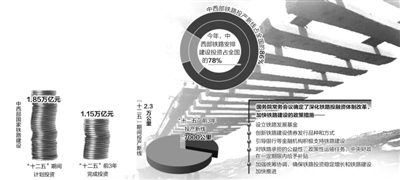 據中國鐵路總公司工程管理中心工程技術部副部長楊斌介紹,“十二五”的前3年,中西部地區國家鐵路建設投資完成1.15萬億元、投產新線7000公里,佔比分別為72%和58%。