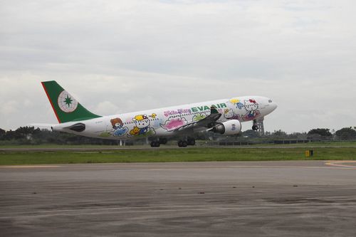 長榮航空從2011年起陸續推出五款第二代Hello Kitty空中巴士彩繪機型,分別命名為歡樂、環球、雲彩、蘋果及魔法機,包含松山與桃園機場共八航線,不只機身畫上不同款可愛的Hello Kitty,連機艙內的座椅、餐點等都充滿了各式Hello Kitty,推出後不只廣受旅客歡迎,歐美媒體也爭相報道。現在長榮航空決定走出亞洲,開辟桃園-洛杉磯新航線,同時首度啟用波音777型客機並將她也妝點成“Hello Kitty彩繪機”,將Hello Kitty的可愛魅力帶往美國。