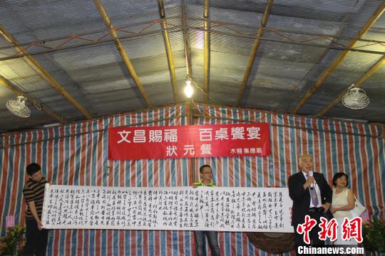 中新網臺北9月28日電 (記者 冽瑋陳立宇)9月28日是臺灣教師節,也是孔子誕辰紀念日。臺灣教育主管部門、各縣市政府以及民間組織舉辦多種形式的教師節慶祝活動。在臺北市文山區木柵集應廟,一場別開生面的“文昌賜福,百桌饗宴”為諸多學業優秀,榮登榜首的學子頒獎,以表達對知識和文化的敬重,表彰教師對社會的貢獻,弘揚尊師重道的中國傳統文化。