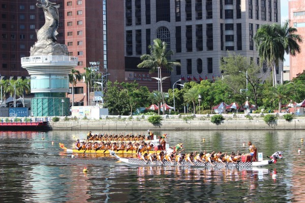 2013端午高雄愛河龍舟賽賽況。(圖片來自臺媒)