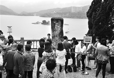 近日,眾多大陸遊客在日月潭景點留影。